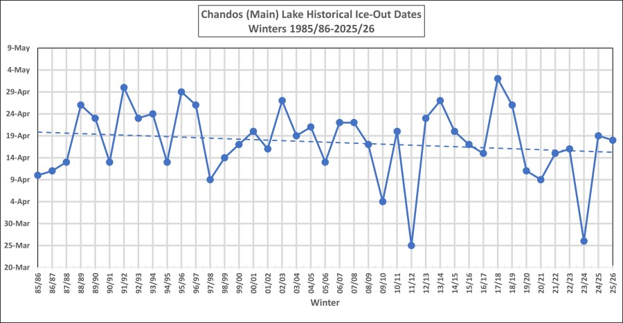 A discussion plus graphs for Ice-In and Ice-Cover can be found at https://chandossier.com/ice-in-and-ice-out/