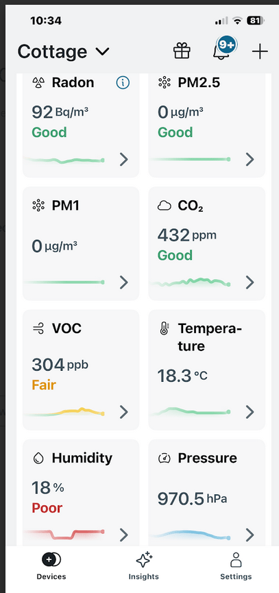 Not only does the “View Plus” provide Radon readings, it also measure PM1 and PM2, CO2, VOC, Temperature, Pressure, and Humidity. Plus it can be hooked to wifi and monitored remotely. It is easy to use and has excellent graphs, etc.